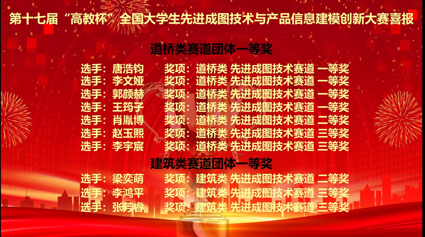 近日,第十七届“高教杯”全国大学生先进成图技术与产品信息建模创新大赛在贵州大学举行,我校ylzzcom永利总站线路检测学子在道桥、建筑两个赛道获得一等奖4项、二等奖2项、三等奖4项,并分别获得团体一等奖,充分展示了东林学子的动手能力、创新意识和协作精神。